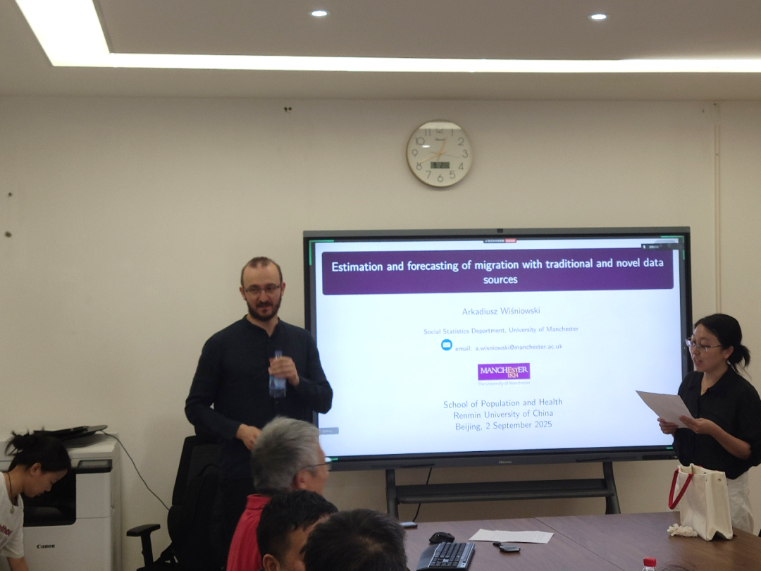 2025年9月2日,中国人民大学人口学系刘铮系列讲座在中国人民大学崇德西楼916成功举办。本次活动由中国人民大学人口与健康学院人口学系、中国人民大学人口与发展研究中心举办。曼彻斯特大学社会统计与人口学Arkadiusz Wisniowski教授应邀以“融合传统与新型数据的移民测量与预测研究”为题进行分享,讲座由人口学系靳永爱教授主持。