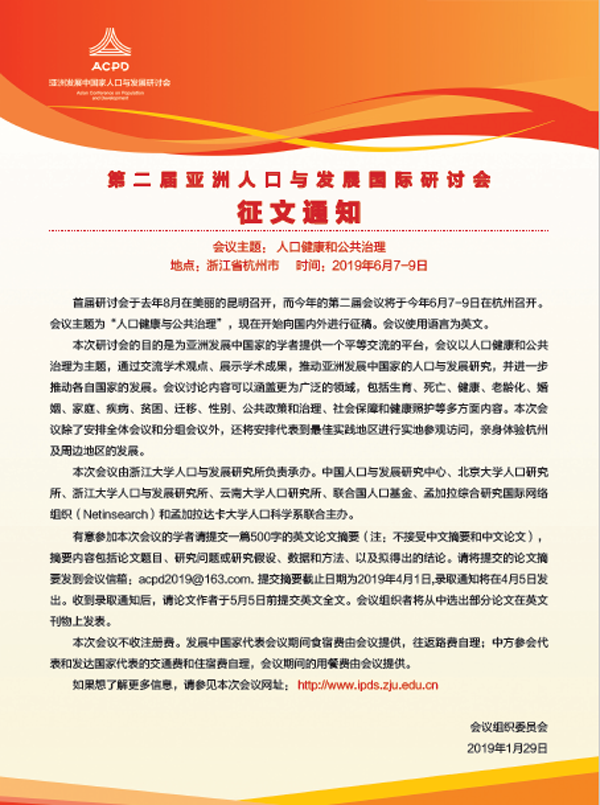 第二届亚洲人口与发展国际研讨会征文通知